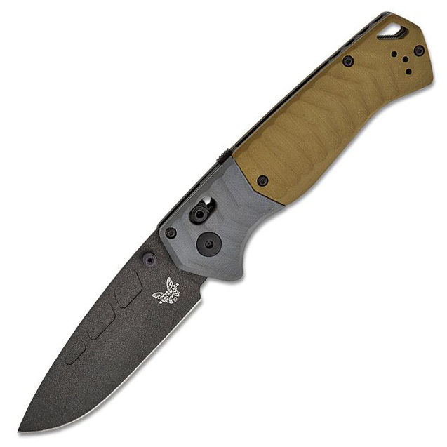 For the outdoor enthusiast who prefers to carry a hard-use folder for camping tasks and survival experiences, the 593BK PSK is your Personal Survival Kit in one tough and rugged lightweight bushcrafting tool. Built sturdy with full liners and outfitted with a textured gray G10 bolster and OD green G10 handle housing a strong, corrosion-resistant CPM-MagnaCut blade with a Cobalt Cerakote finish. The palm-filling PSK includes rapid and reliable AXIS Assist actuation with integrated spine safety and a dedicated striking choil at the base of the blade for fire starting with a ferro rod. If you like to carry an auto outdoors but are restricted by your region, the 593BK PSK is the perfect alternative for efficient and ambidextrous one-hand deployment