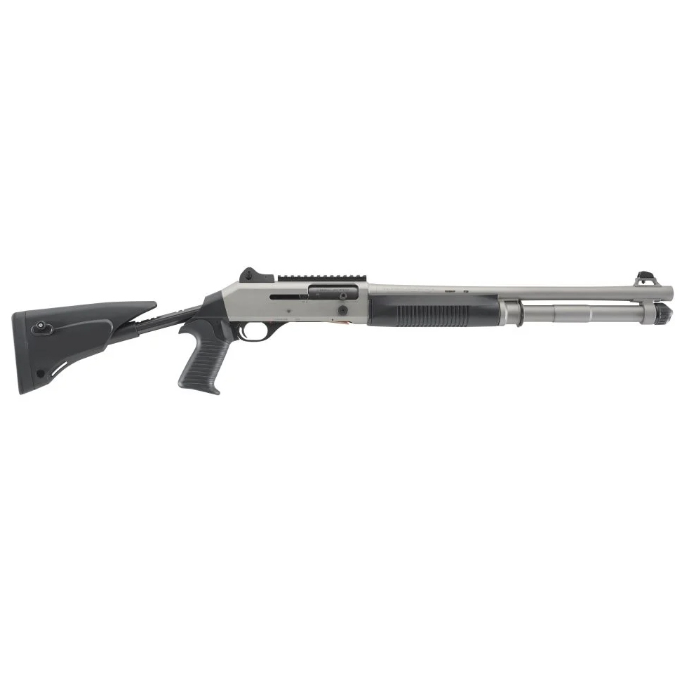 The Benelli M4 EXT is a tactical semi-automatic shotgun chambered in 12 gauge, featuring an 18.5-inch barrel and Benelli’s ARGO dual-piston gas system for reliable operation in demanding conditions. With a 7+1 capacity and FDE finish, it includes an enlarged bolt release, integrated Picatinny rail, and ghost ring sights for quick target acquisition. The pistol grip telescoping stock adjusts for length of pull, enhancing maneuverability and control.