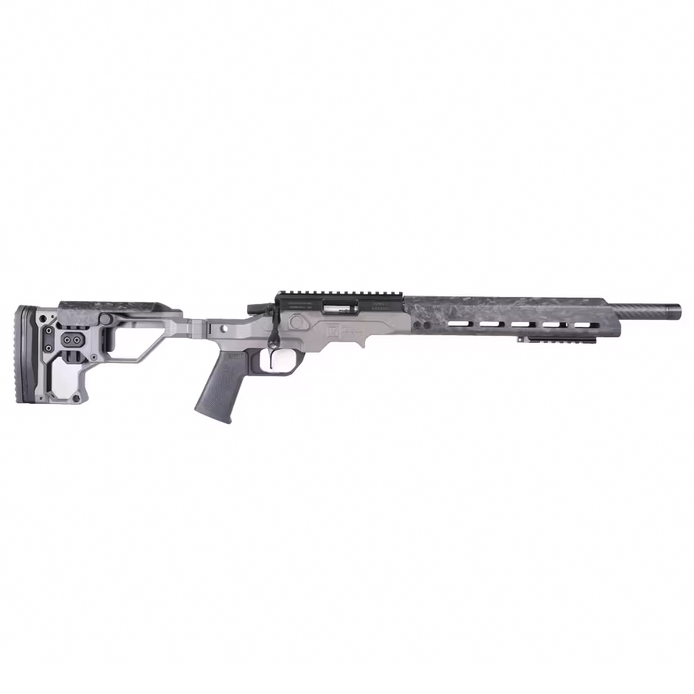 Chrisensen Arms sets a new standard for precision rimfire with the MPR Rimfire – a scaled down version of the renowned Modern Precision Rifle. It shares the same controls and overall profile as its centerfire counterpart, making it a perfect choice as a trainer for existing MPR owners. The chassis is precision machined from a solid block of aluminum billet and features an FFT (Flash Forged Technology) cheekpiece and forend for an extremely lightweight structure that exceeds strength and safety margins without compromising performance. The stock features an adjustable comb height to ensure proper alignment between the shooter’s eye and a mounted optic and can also be adjusted for length-of-pull to fit different sized shooters. The stock is also foldable and is held in the folded position via Magnelock Technology. The barrel of the MPR Rimfire is a proprietary Christensen Arms carbon fiber barrel with 1/2×28” threading, allowing suppressors and other muzzle devices to be used. Other features include a compatibility with Ruger BX-1 magazines and AR style grips. Like all Christensen Arms bolt action rifles, the MPR Rimfire comes with a sub-MOA guarantee.