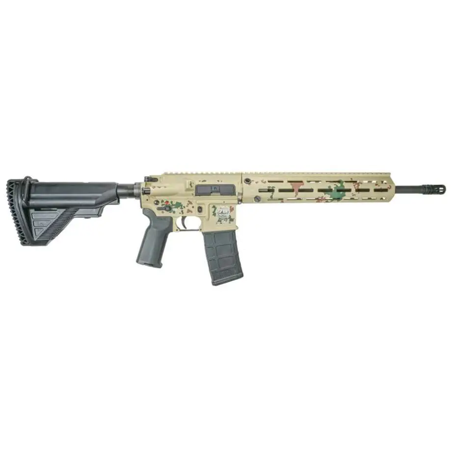 These MR556A1 and MR762A1 rifles will be decorated in Flecktarn and Tropentarn, the camo patterns utilized by the German armed forces, or Bundeswehr. The Bundeswehr has fielded various HK weapons uninterrupted since its very first rifle acquisition, the G3, in the 1950s. There is no longer lasting or more valued relationship in our history than this one, which we celebrate at this time as well.