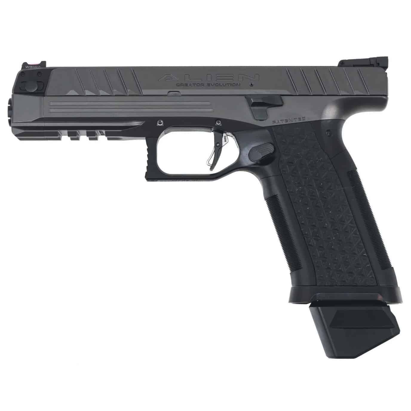 The game-changing Laugo Arms Alien, a semiautomatic pistol like no other. Packed with groundbreaking features and patented innovations, the Alien leaves behind outdated locking mechanisms and traditional trigger systems. This cutting-edge approach is fueled by our unwavering commitment to advancing firearm technology and catering to the needs of competitive shooters.