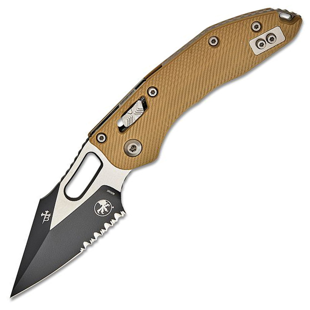Released in 2023, the Stitch RAM-LOK debuted with the MSI (Microtech Standard issue) as Microtech’s first blades to feature their fantastic RAM-LOK technology. This tough take on the crossbar lock features Microtech’s signature step pattern made famous by the actuation switches on the Ultratech series. The large blade cutout gives ample room for reverse middle finger flicks as well as standard slow-roll thumb opening with or without gloves. If neither of those is your preference, then simply pull down on the RAM-LOK and the blade flies open with a simple wrist flick. The aluminum handles are smooth and slightly textured, providing great grip potential in both standard and reverse grips. Rugged, durable, and made in the USA; we know that the MSI is going to quickly become a fan favorite among all members of the knife community.