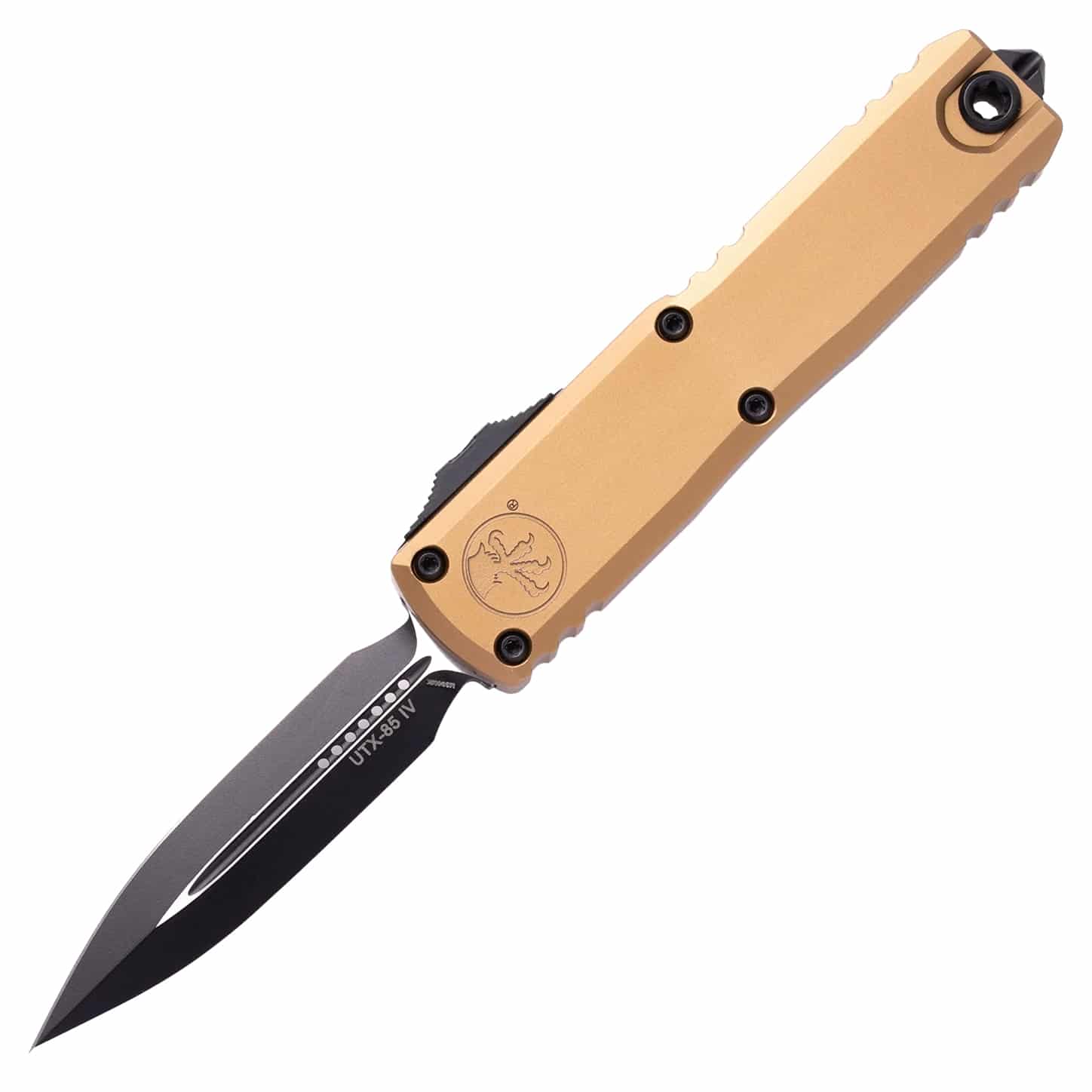 Microtech UTX-85 Gen IV Auto OTF 3″ M390MK Black Double Edge Dagger – Tan