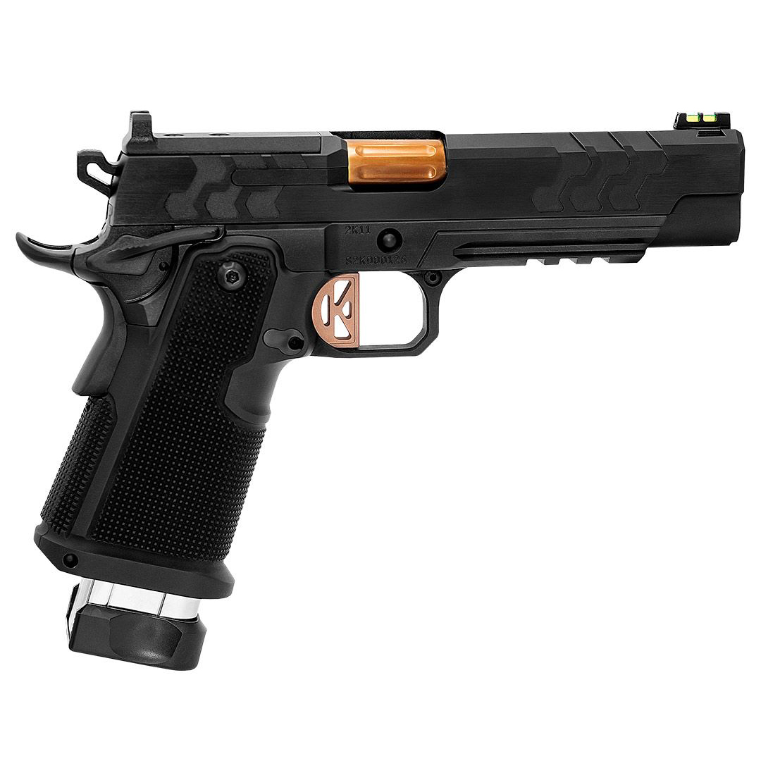 From hammer to muzzle, the 2K11 has been built around all the features Kimber enthusiasts requested. An enhanced sub-frame shaped for superior magazine fit and control, plus an accessory rail for optional lights and lasers. The 2K11 is also the introduction of the patent-pending tool-less guide rod. The new GT trigger with a 3-4lb pull is precision machined and finished for a clean, crisp break.