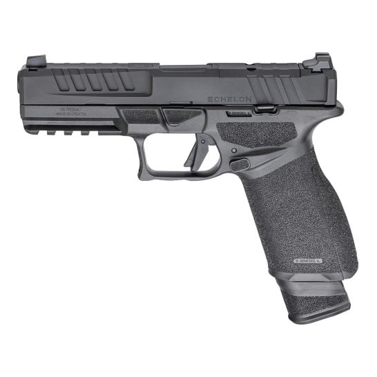 Engineered with superior ergonomics and built to withstand the harshest conditions, the Echelon™ 4.5″ 9mm pistol with three-dot tritium sights sets a new standard for modern, striker-fired duty pistols. With a host of patent pending features, this fully ambidextrous pistol is designed around a robust stainless steel chassis and a revolutionary optics mounting system. In addition, the Echelon’s three-dot tritium sights ensure performance in low-light conditions.