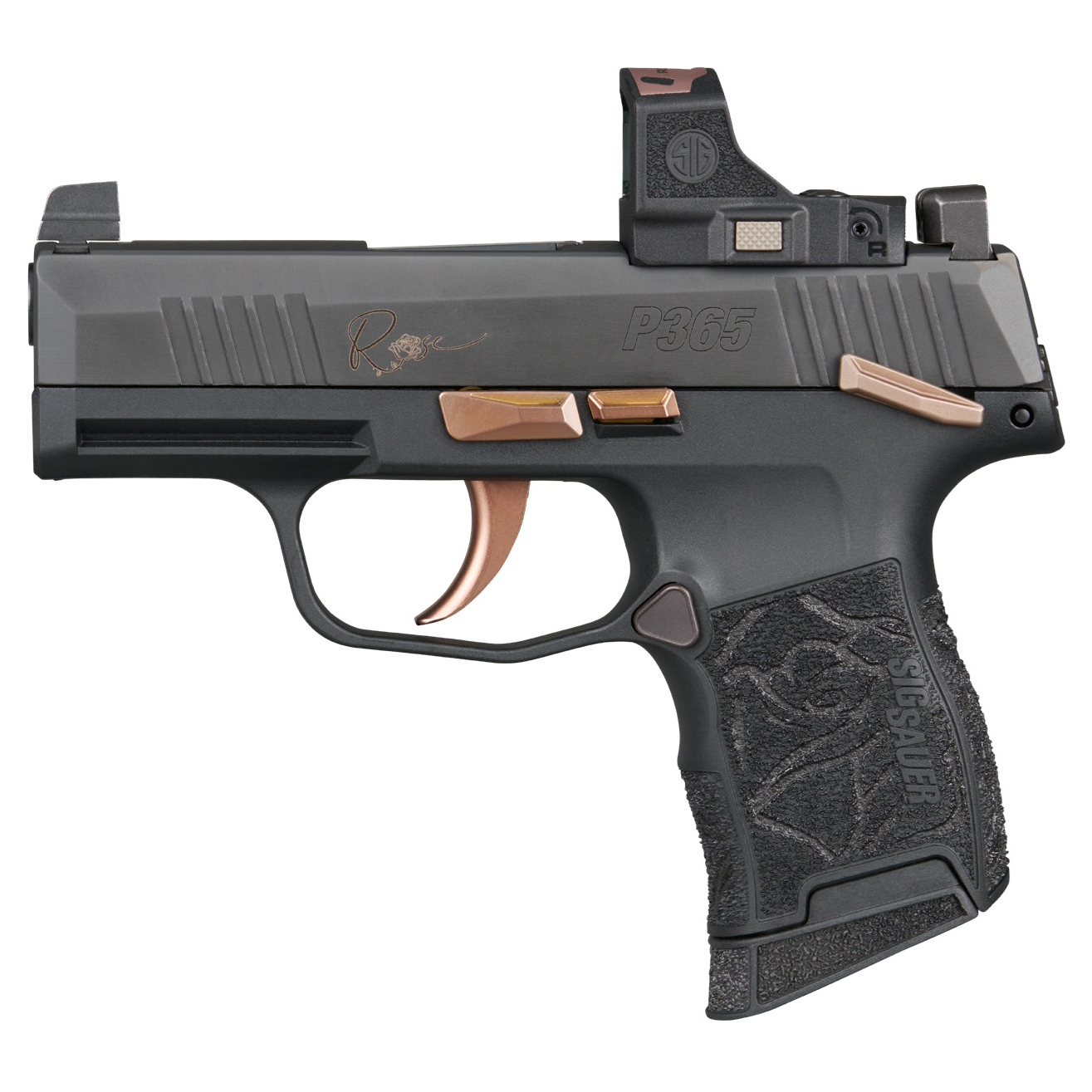 The P365 ROSE kit includes a special edition P365 pistol in either 9mm or .380, a custom ROSE Vaultek lockable storage case, and instant access to a complete step-by-step ROSE video training series that allows you to learn at your own pace, along with a ROSE online community to help encourage and inspire you with help and support as you continue to grow as a more confident and comfortable shooter.