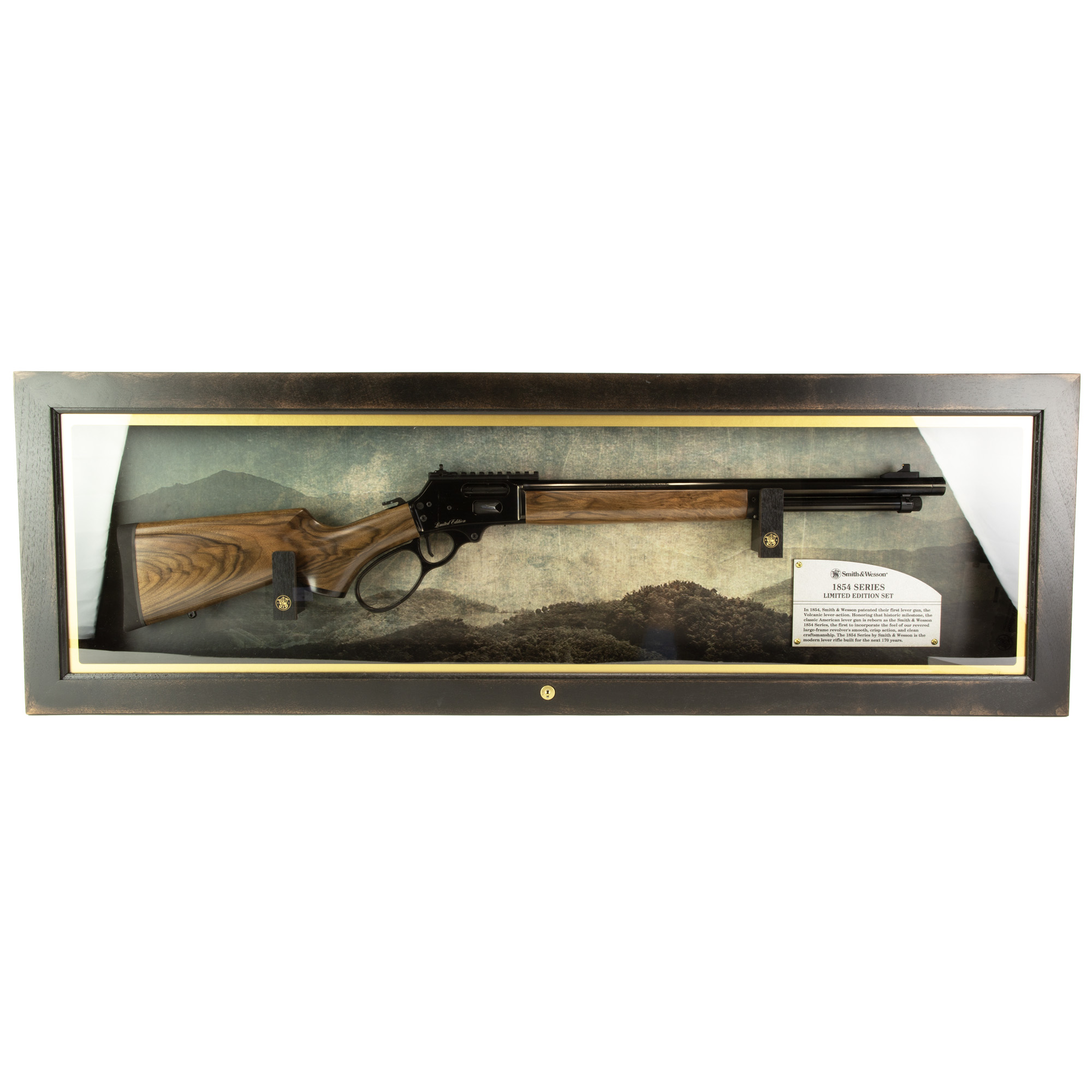 The Model 1854 by Smith & Wesson, a triumph of over 170 years of craftmanship. This lever-action rifle seamlessly melds precision engineering and timeless design with modern features, including a Picatinny rail for optics. Experience the perfect blend of heritage and innovation.