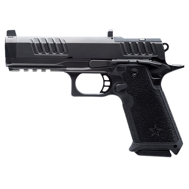 The Staccato HD P4.5 is the latest in the HD lineup, featuring a 0.5″ longer barrel than the P4 and a sight-block that adds non-reciprocating mass at the front for improved recoil control. Its longer frame complements the extended barrel, resulting in a softer shooting experience while keeping the P4’s fast cycling speed. The integrated, non-threaded sight-block (similar to the XC) also ensures compliance with threaded barrel restrictions.
